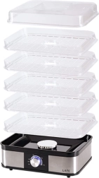 Läbipaistvad korrused lihtsustavad protsessi jälgimist, samas kui 5 mahukat resti võimaldavad korraga kuivatada suurema koguse toorainet. Kui on vaja ruumi säästa, saab mõned restid hõlpsalt eemaldada. Integreeritud ventilaator ja perforeeritud restid soodustavad õhuringlust, takistavad hallituse teket ja lühendavad kuivatamisaega.