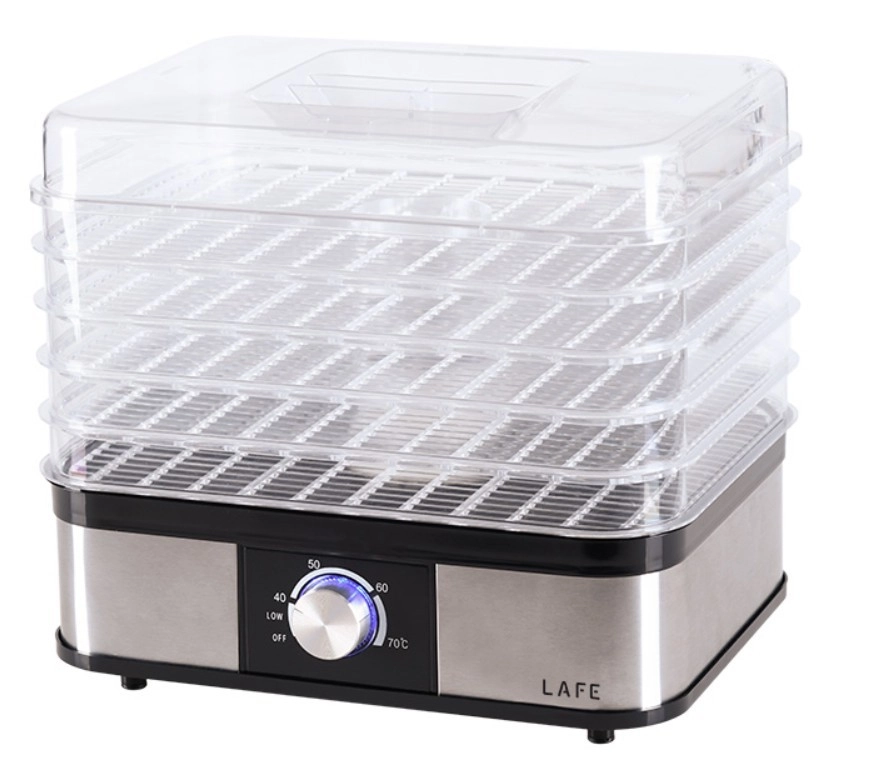 Praktiline LAFE NutriDry toidukuivati on ideaalne valik kõigile, kes soovivad säilitada toiduainete loomuliku maitse ja aroomi ilma säilitusaineteta. Reguleeritav temperatuur (u 40–70 °C) ja ühtlane õhuvool võimaldavad suurepäraseid tulemusi seente, puuviljade, köögiviljade, ürtide ja liha kuivatamisel.