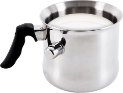 See kvaliteetne roostevabast terasest kahekordse seinaga piimapott veevestlusega sobib suurepäraselt õrnaks piima soojendamiseks ja keetmiseks, kastmete ja pudingite valmistamiseks ning šokolaadi sulatamiseks. Keemistemperatuurini jõudes annab vile märku, et piim on valmis, ning hoiab ära ülekeemise.