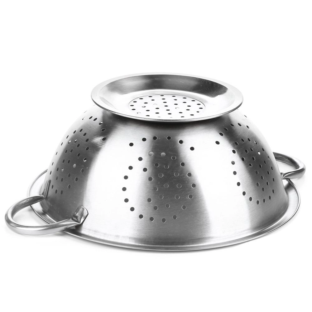 Universaalne roostevabast terasest kausikujuline sõel läbimõõduga 24 cm, stabiilse aluse ja kahe käepidemega – ideaalne puu- ja köögiviljade pesemiseks ning pasta või riisi kurnamiseks. Kauakestev roostevaba teras, paljud äravooluavad ja ergonoomilised käepidemed tagavad mugava ja turvalise kasutuse igas köögis.