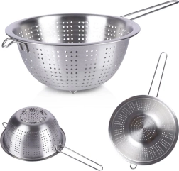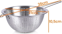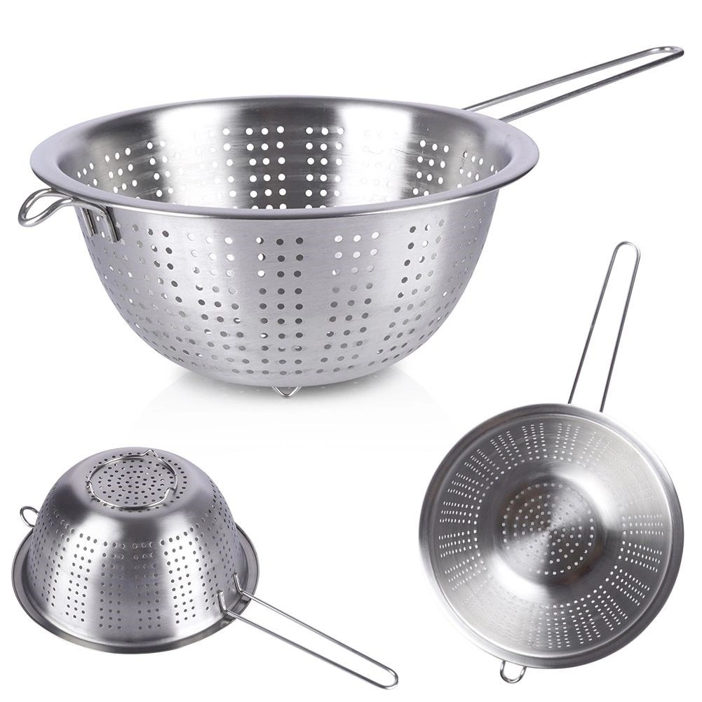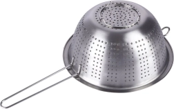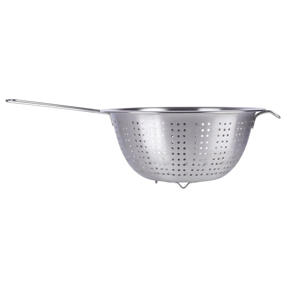 Universaalne roostevabast terasest sõel läbimõõduga 21 cm ja pika käepidemega on ideaalne pastade kurnamiseks, puu- ja köögiviljade pesemiseks ning vedelike valamiseks. Tänu stabiilsetele jalgadele ja abikonksule saab selle mugavalt toetada poti või kausi servale. Valmistatud kvaliteetsest roostevabast terasest pikaealisuse ja lihtsa puhastamise tagamiseks.