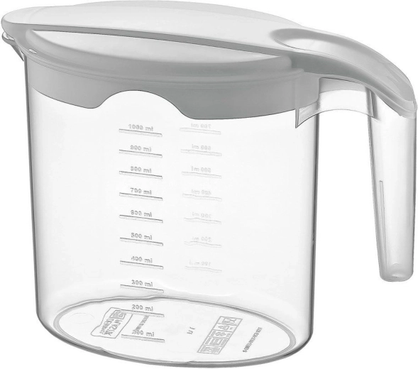 Kerge ja vastupidav 1 l plastkann on loodud mugavaks kasutamiseks nii köögis kui ka õues. Praktiline tila tagab puhta valamise ilma tilkumiseta, samal ajal kui suletav kaas kaitseb jooke tolmu ja putukate eest. Tänu mõõduskaalale sobib see ka vedelike täpseks mõõtmiseks.