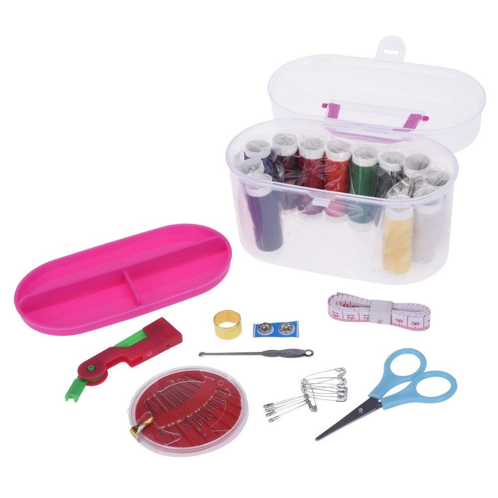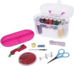 Praktiline õmplemiskomplekt 50 osaga kaasaskantavas korraldajas. Sisaldab värvilisi lõngu, nõelu, väikseid kääre, rätsepa mõõdulinti, nööpe, nõelatopist, niidiläbijat ja haaknõelu. Kerge, läbipaistev klambriga karp on ideaalne reisile ja ka kodusteks parandusteks. Tugevad ja elastsed lõngad lihtsustavad kiiret paikamist ja rõivaste kohendamist.
