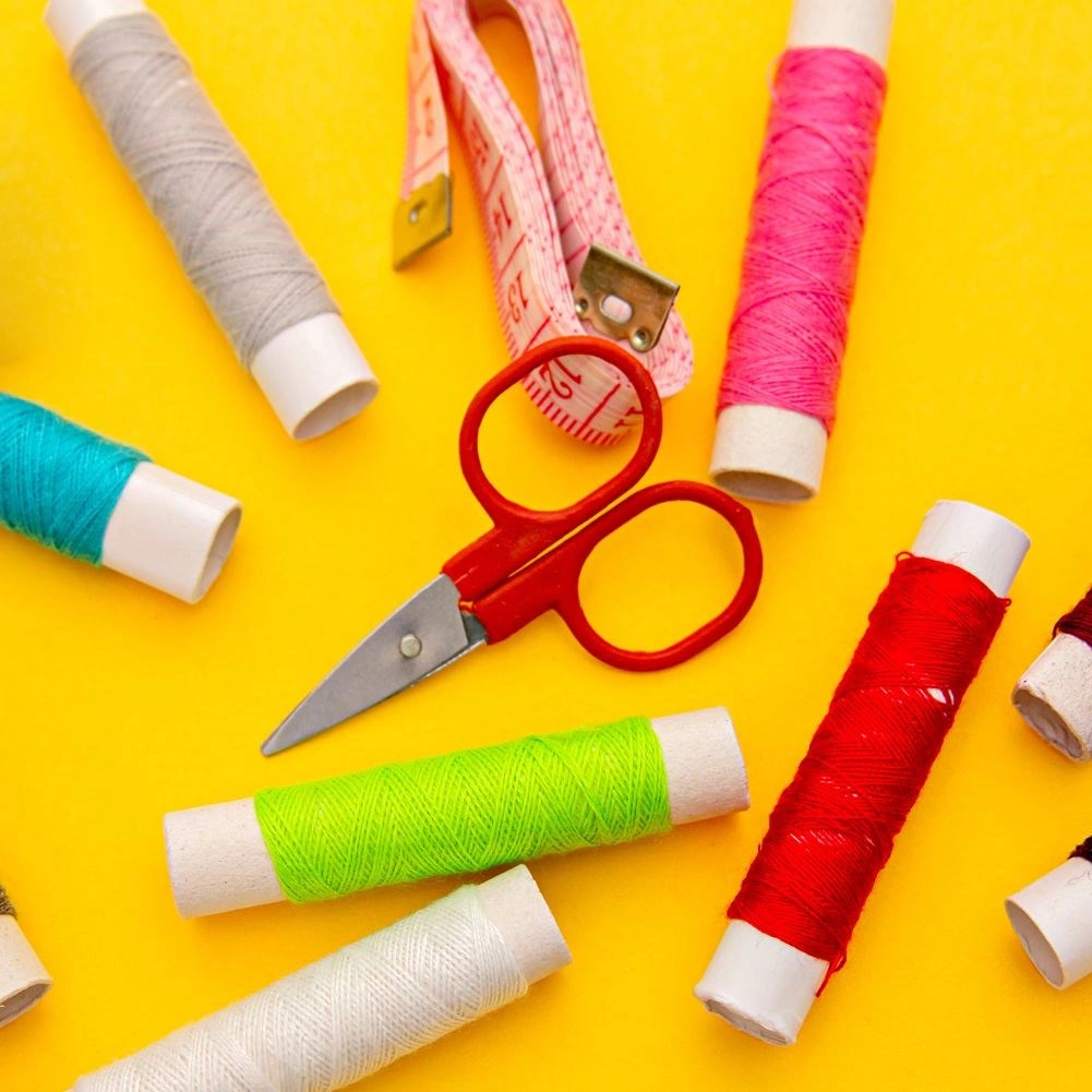 - Erinevat värvi lõngad, nõelad, väikesed käärid, rätsepa mõõdulint, nööbid, nõelatopp, niidiläbija, haaknõelad, nõelapadi