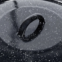 Teraskorpus emailiga on kriimustus- ja korrosioonikindel, samas kui jäik sang tagab ohutu tõstmise ka kõrgematel temperatuuridel. Email võib loomulikult näidata väikseid tootmislisi ebatasasusi (kõrvalised kühmukesed, ebaühtlane pihustus jms), mis ei mõjuta kvaliteeti ega funktsiooni.