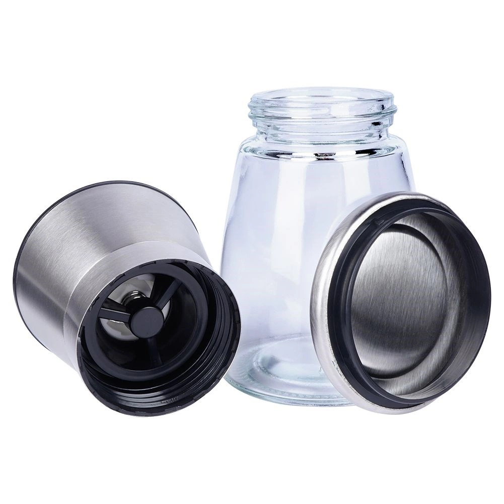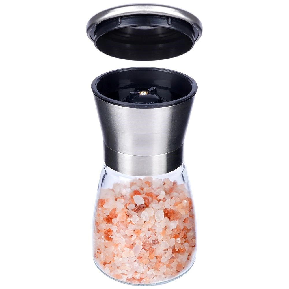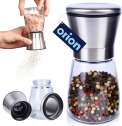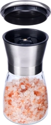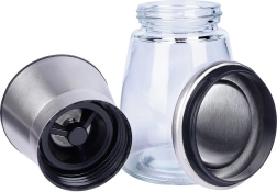 Praktiline käsiveski soolale, piprale ja muudele maitseainetele, kõrgus 13,5 cm, ühendab klaasi ja roostevaba terase pika tööea tagamiseks. Sellel on keraamiline jahvatusmehhanism, sujuv jämeduse reguleerimine ja sulgev kaas, mis hoiab ära puru pudenemise. Elegantne disain sobib suurepäraselt igasse kööki ja lauale.