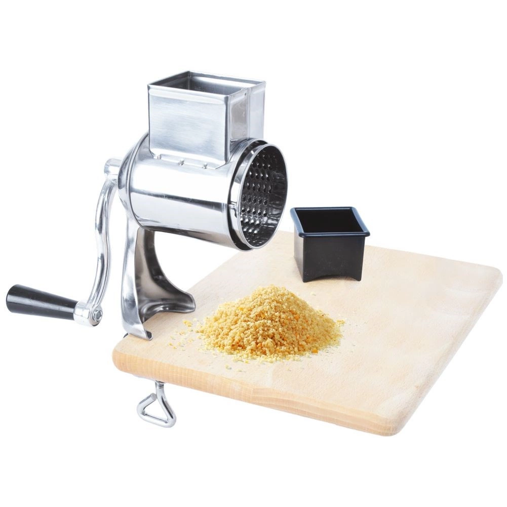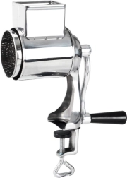 Praktiline käsitsi pöörlev riiv kruviklambriga tööpinnale kinnitamiseks (maks. paksus u 3,5 cm) tagab töö ajal suurepärase stabiilsuse. Roostevabast terasest korpus koos vastupidava plastiga ja mugav vänt võimaldavad sujuvat riivimist ilma suure jõuta. U umbes 6 × 5 cm suurune täiteava mahutab koostisosad mugavaks pidevaks töötlemiseks.