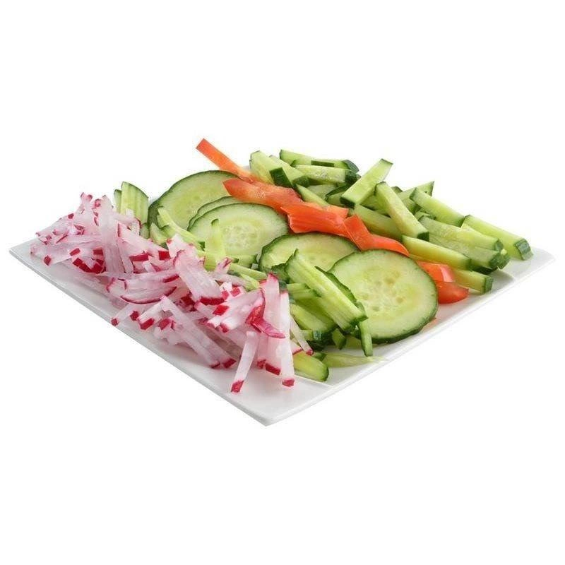 Universaalne lõikur lihtsustab köögiviljade ja puuviljade ettevalmistamist salatite, lisandite ja koduste krõpsude jaoks. Vastupidav valgest plastikust korpus ja roostevabast terasest terad tagavad pika kasutusea ja usaldusväärse töö. Ohutuskinnitus kaitseb sõrmi ning võimaldab mugavalt riivida ja lõigata ka väiksemaid tükke.