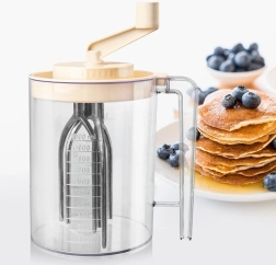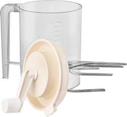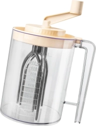Praktiline käsimikser vända ja integreeritud 1,5 l mõõdutopsiga lihtsaks vahustamiseks, segamiseks ja tainaste valmistamiseks. Tänu läbipaistvale anumale täpse ml- ja liitriskaalaga, kindlale käepidemele ja pritsmekindlale kaanele valmistad kiiresti ja puhtalt vahukoore, munavalgevahu, pannkoogitaigna ja kastmed. Mehhaaniline töö ilma elektrita, vastupidavad materjalid ja lihtne hooldus teevad sellest mikserist usaldusväärse abilise igasse kööki.