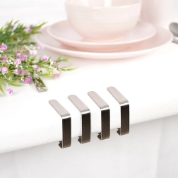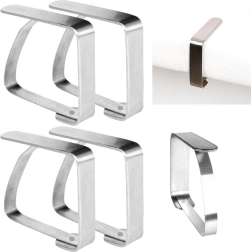 Praktiline komplekt 4 roostevabast terasest laudlinalõksust hoiab nii tekstiil- kui ka ühekordsed laudlinad kindlalt paigal kodus, terrassil ja aias. Vastupidavast roostevabast terasest klambrid on kerged, tugevad ja lihtsalt peale pandavad ning eemaldatavad. Need kohanduvad automaatselt laua plaadi paksusega ja on ideaalsed ka tuulise ilmaga, et laudlina ei libiseks ega kortsuks.
