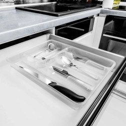 Korralda sahtel selgelt ja vaevata. Läbipaistev söögiriistade sahtlisisu aitab ruumi tõhusalt jaotada ja hoida kõik käeulatuses. Kvaliteetne materjal tagab pikaealisuse ja puhta välimuse igapäevases kasutuses.