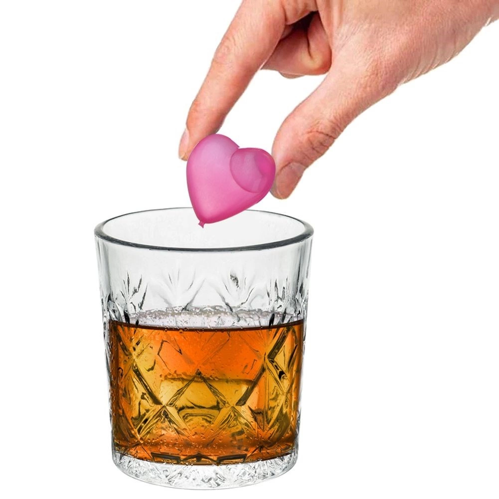 Avastage praktiline ja lõbus lahendus täiuslikuks värskenduseks: korduvkasutatavad südamekujulised jahutuskuubikud. Veega täidetud kuubikud hoiavad pärast külmutamist joogi meeldivalt külmana, ilma et seda sulaveega lahjendaksid. Värvilised südamed paistavad klaasis kaunilt silma ja lisavad jookidele elegantse ilme.