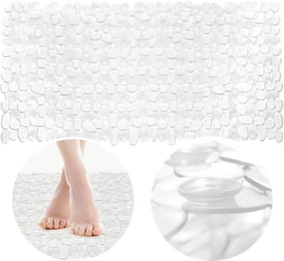 Praktiline libisemiskindel matt duši või vanni jaoks tagab kindla sammu ka märjal pinnal. Kümnete iminappade tõttu püsib see kindlalt paigal, samas kui õrn, kiviklibu tekstuur pakub mugavust nii duši all kui vannis. Läbipaistev välimus on tagasihoidlik ja sulandub elegantselt mis tahes vannitoastiiliga.