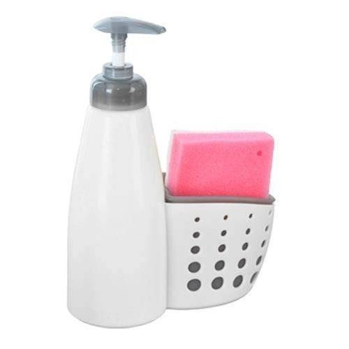 Praktiline nõudepesuvahendi või vedelseebi dosaator eemaldatava nuustikuhoidjaga hoiab sinu köögi ja vannitoa kenasti korras. Tänu 370 ml mahule saad lemmikvahendit hõlpsalt täita ning mugava pumbaga doseerida täpselt nii palju, kui tarvis – ilma raiskamiseta. Vastupidav plastkorpus valge-halli värvilahendusega, õhutatav alus nuustiku kiireks kuivamiseks ja kompaktne mõõt 15 × 7 × 20 cm teevad sellest komplektist nutika lisandi igale kraanikausile ja valamule.