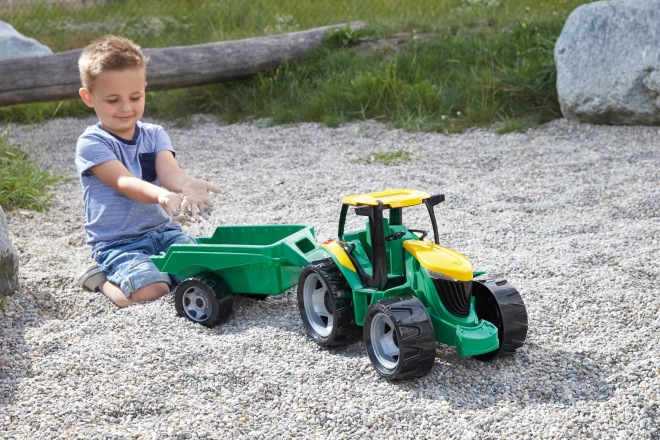 Traktor on valmistatud kõrgekvaliteedilisest plastist, mis peab vastu igapäevasele kasutusele ja ilmastikumõjudele. Haagis võimaldab vedada väikseid esemeid, arendades laste kujutlusvõimet ja motoorikat. Tänu suurele kandevõimele on mänguasi stabiilne ja ohutu.