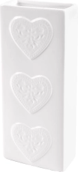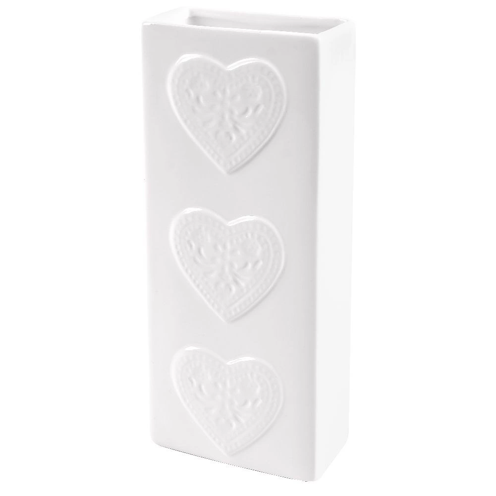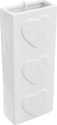 Valge glasuuritud keraamika reljeefsete südametega näeb elegantne välja ja sobitub nii modernsesse kui ka klassikalisse interjööri.
