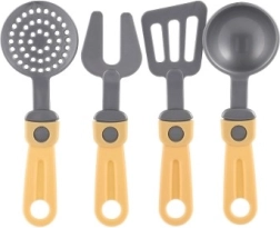 Komplektis on kolm potti koos kaantega ja neli erinevat köögitarvikut, mis sobivad erinevateks kujuteldavateks kokkamistegevusteks.