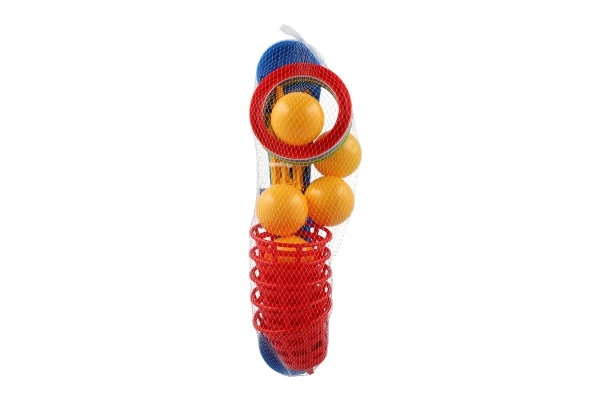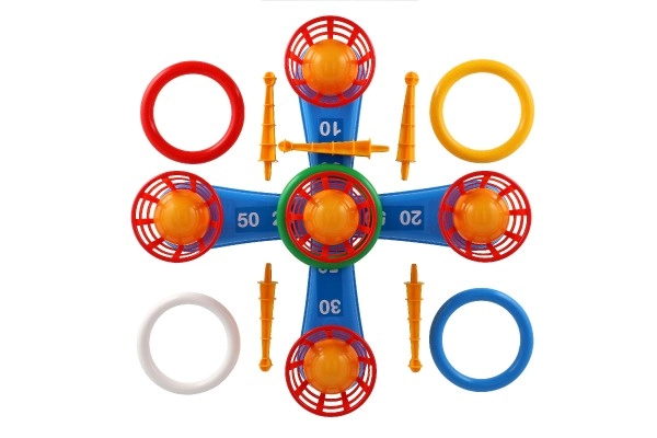 See lõbus mäng on ideaalne kõige väiksematele lastele. Komplektis on rist viie ogaga, millele lapsed viskavad värvilisi plastist rõngaid, et koguda punkte. Iga vise, mil rõngas õnnestub ogale saada, toob punkte, mis toetab võistlusmomenti ja täpsust. Teine mänguviis toimib samal põhimõttel, kuid ogad on asendatud pallikorvikestega, mis pakub uut väljakutset.
