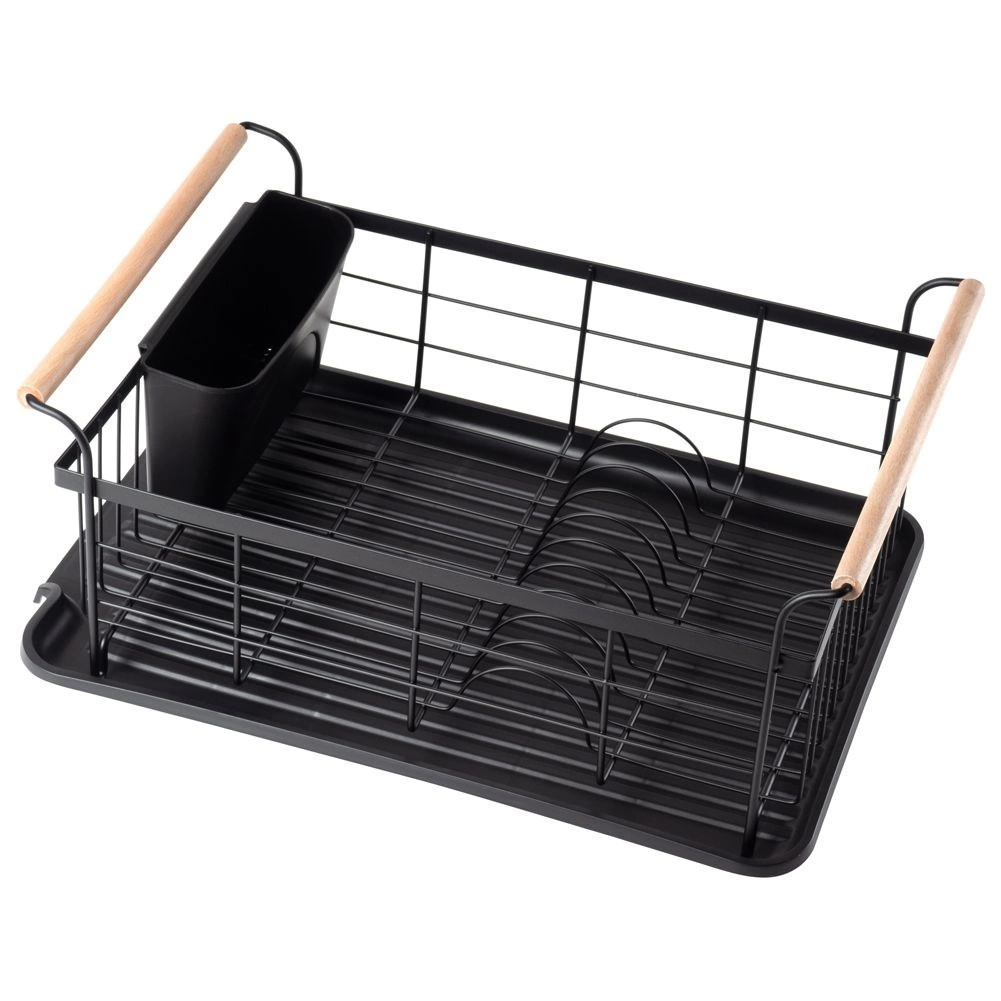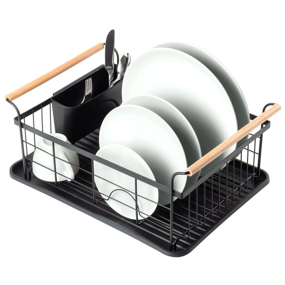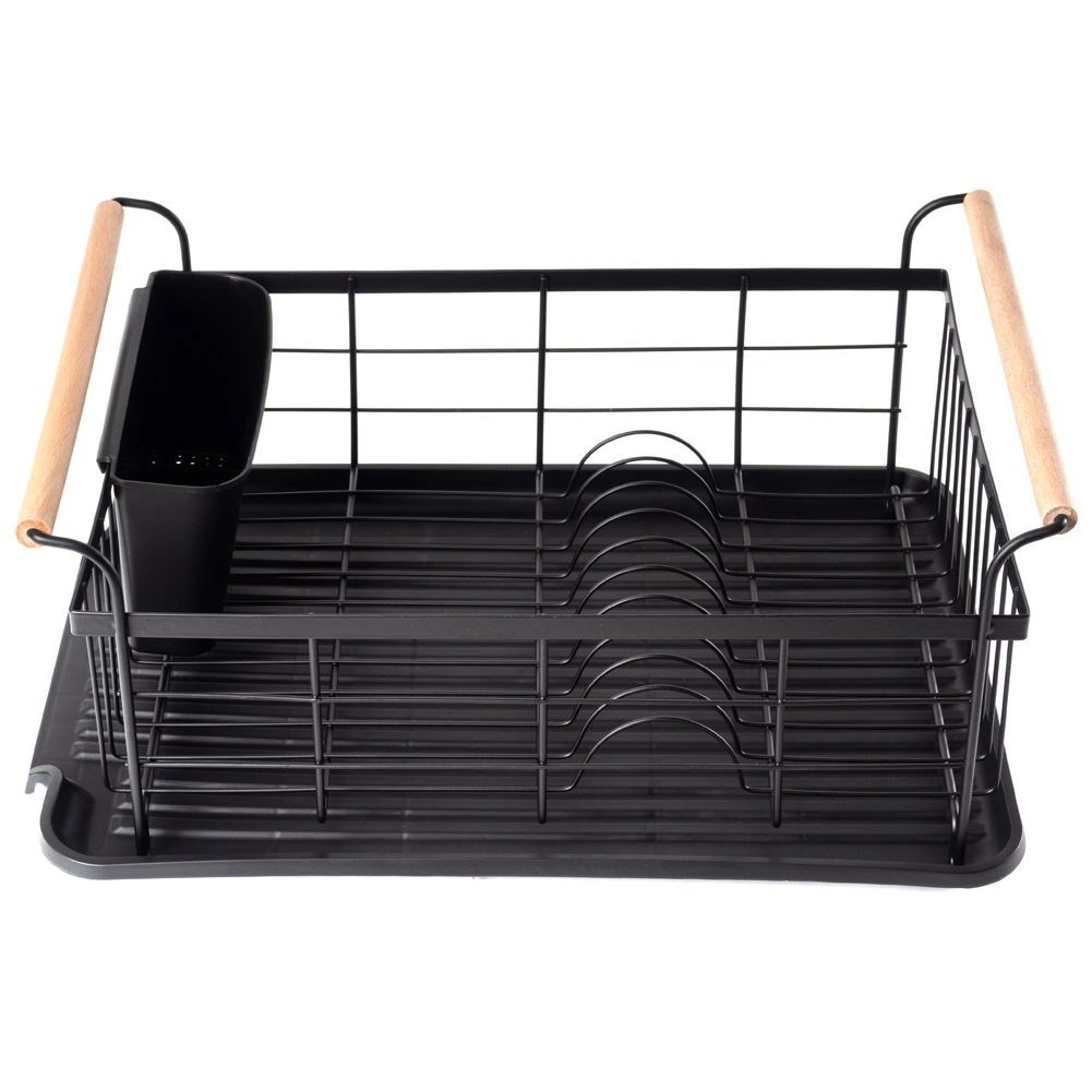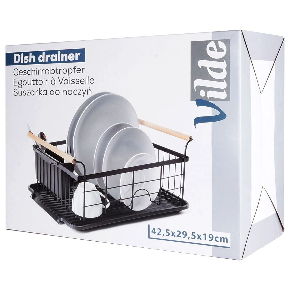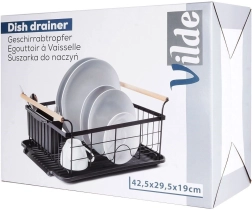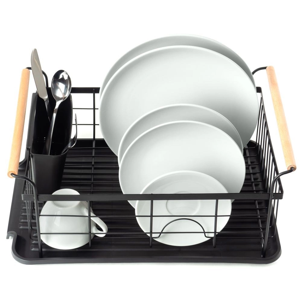 Elegantne ja funktsionaalne mustaks lakitud metallist nõudekuivatusrest ühendab vastupidavuse ja praktilised detailid taldrikute, klaaside ja söögiriistade mugavaks kuivatamiseks. Sooneline tilgutusalus püüab vee kinni ja kaitseb tööpinda, samal ajal kui väljatõmmatav söögiriistade korv hoiab korra majas ja tagab kiire kuivamise.