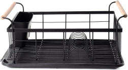 Stiilne must nõudekuivatusrest puidust sangadega muudab igapäevase nõudepesu lihtsamaks ja hoiab tööpinna kuivana. Sellel on tugev metallkarkass, eemaldatav tilgutusalus ja eraldi söögiriistade korv, mida saab kinnitada nii seest- kui välisküljele. Minimalistlik disain sobib nii modernsetesse kui ka klassikalistesse köökidesse ning tänu kompaktsetele mõõtudele mahub ka väiksemale tööpinnale.