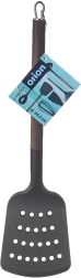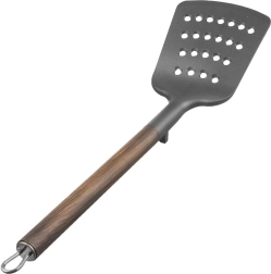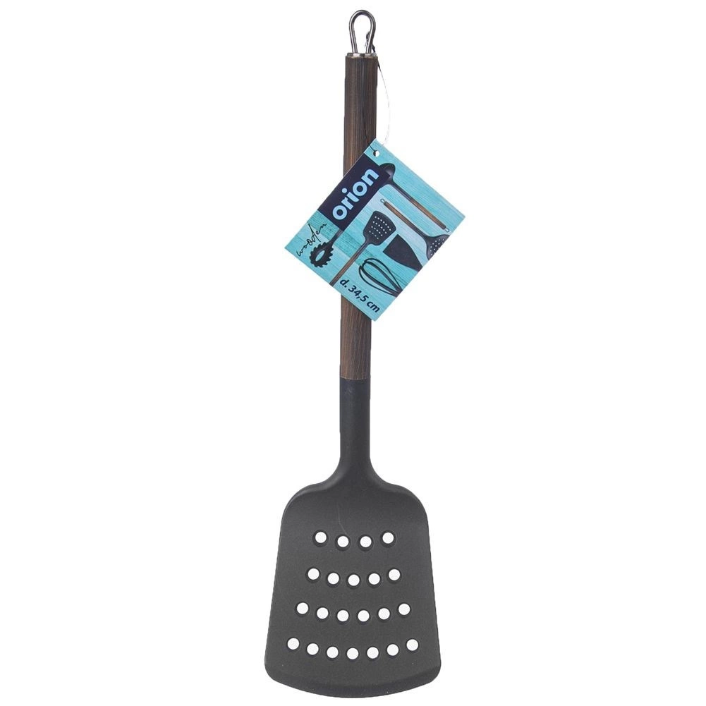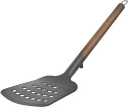 WOODEN-labidas mõõtudega 34,5 × 9 cm on valmistatud kvaliteetsest PBT-termoplastist, mida iseloomustab kõrge jäikus ja vastupidavus. Metallist käepide puidu dekoratiivviimistlusega tagab mugava haarde ja elegantse välimuse, mis sobitub nii traditsioonilistesse kui ka modernsetesse köökidesse.