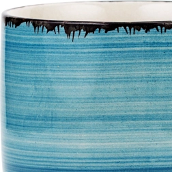 Universaalne kvaliteetsest kivikeraamikast kruus ühendab praktilisuse ja kaasaegse välimuse. Sinakas‑beež glasuur silmapaistva triibulise dekoriga ja tumeda servaga mõjub omanäoliselt ning sobitub kergesti muu lauanõudega. 355 ml maht on ideaalne espresso lungo’le, cappuccino’le, teele ja kuumale šokolaadile.