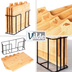 Vastupidav must metallhoidik hoiab lõikelauad püstises asendis, tagab parema õhuringluse kiireks kuivamiseks ja võimaldab hoida lauad alati kenasti järjestatult.