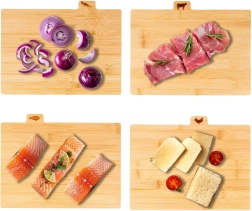 Igal lõikelaual on sakiga serval graveeritud ikoon konkreetse toidutüübi jaoks – köögiviljad, linnuliha, liha ja kala. Nii väldite hõlpsalt ristsaastumist ja hoiate toiduvalmistamisel puhtust.