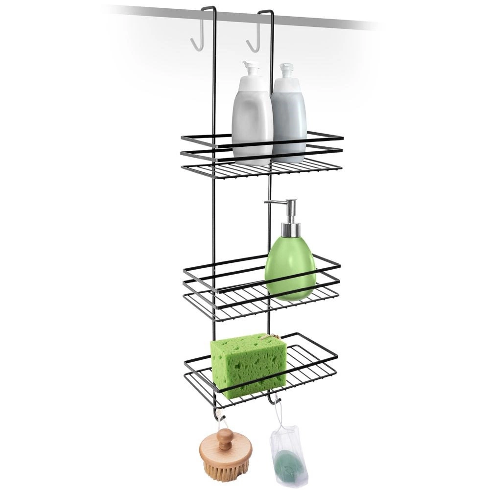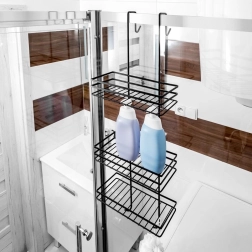 Kolmetasandiline lahendus mahutab kõik alates šampoonidest kuni dušigeelide ja seebideni – selgelt nähtaval ja käepäraselt duši all.