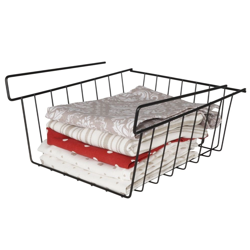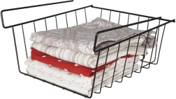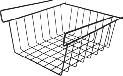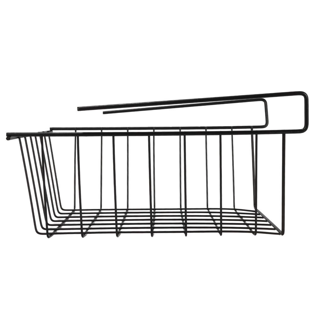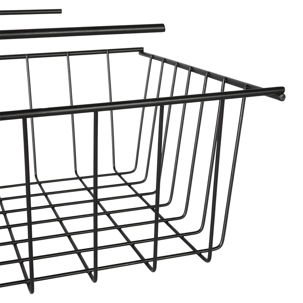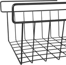 Korralda köök, vannituba, garderoob ja kontor selle riiuli alla riputatava korviga. Tugev industriaal-/loft-stiilis metallkarkass on vastupidav, avatud traadist seinad tagavad suurepärase ülevaate sisust ja õhuringluse. Ilma puurimise ja tööriistadeta: korvi piisab lihtsalt riiuli servale libistada, et kasutada ära seni kasutamata ruum riiuli all.