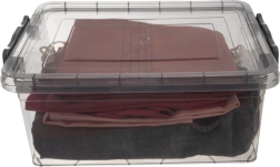 Praktiline ja vastupidav hoiukarp kaanega on suurepärane lahendus igapäevaseks kodu korrastamiseks. Läbipaistvad seinad võimaldavad sisu kiiret kontrolli, samas kui tugevad klambrid tagavad kindla sulgemise ja kaitse välismõjude eest. Tänu universaalsetele mõõtudele 43 × 28 × 18 cm mahutab see toiduaineid, kodutarvikuid ja laste mänguasju.