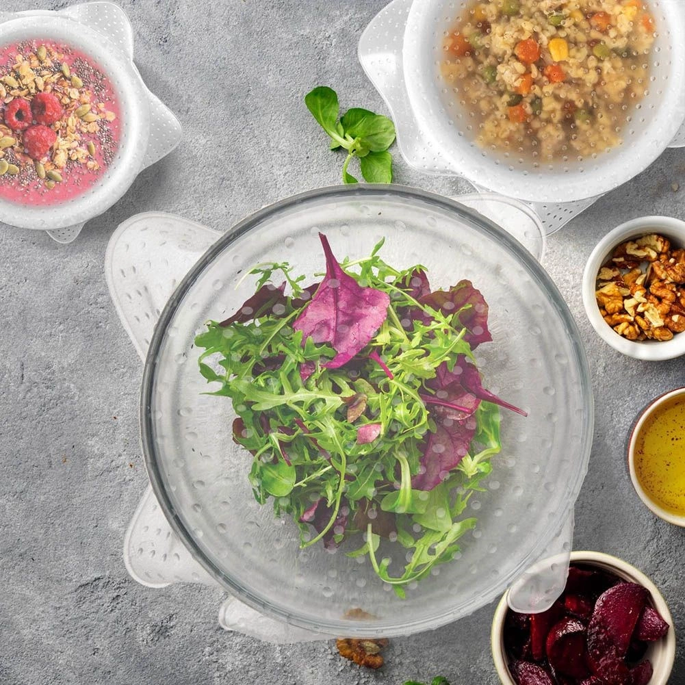 Hoidke toit kauem värske ja köök korras. Silikoonkaaned kolmes populaarses läbimõõdus 15/20/26 cm kohanduvad paindlikult erinevate anumate servadega ja loovad usaldusväärse katte. Tänu õrnale perforatsioonile/struktuurile ja elastsusele lasevad need kergelt auru läbi, samal ajal vähendades pritsmeid ja lõhnade lekkimist.