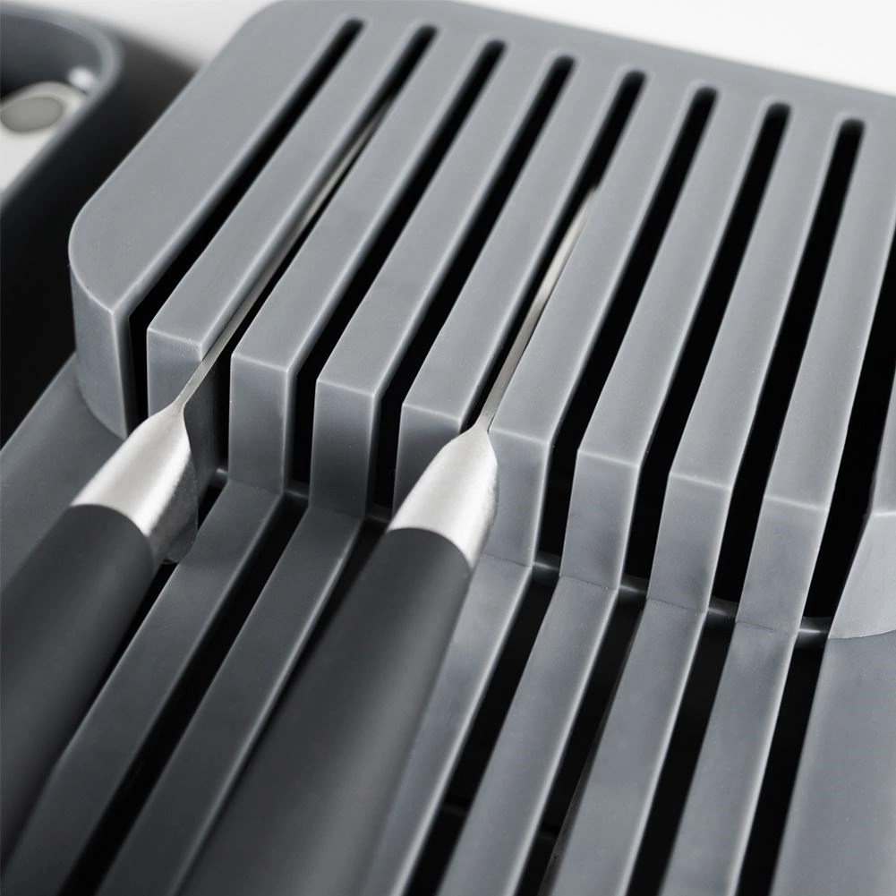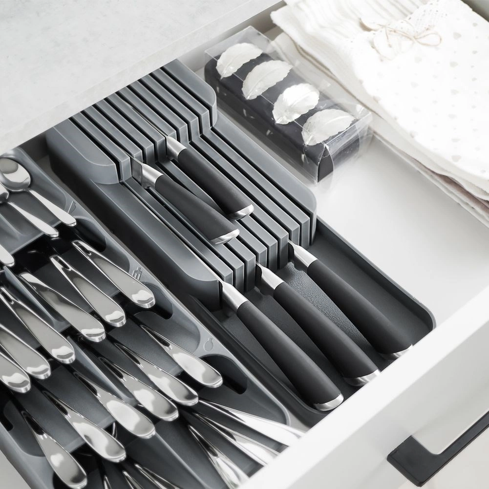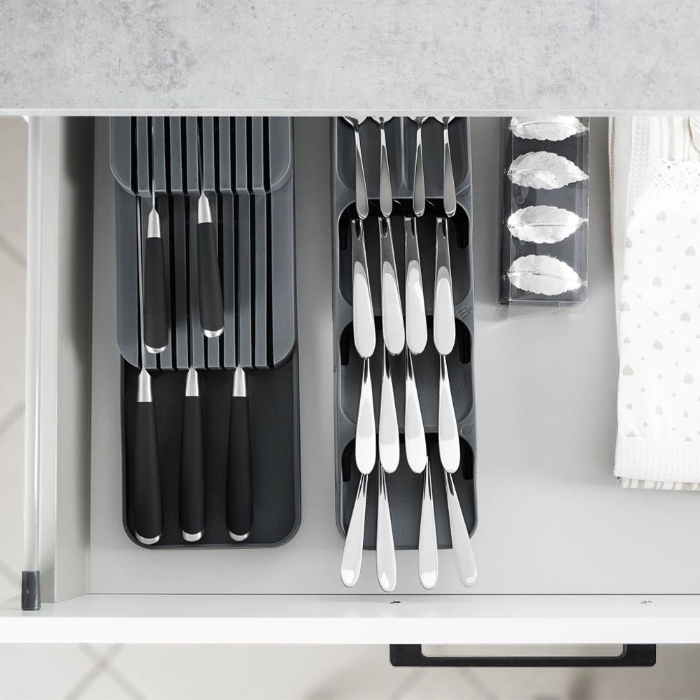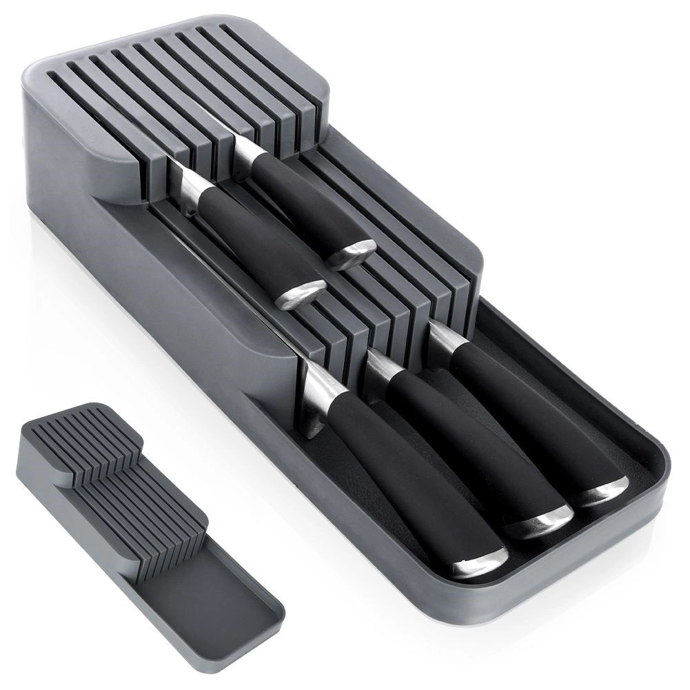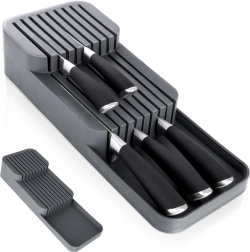 Astmeline, mitmetasandiline konstruktsioon võimaldab hoida rohkem nuge väiksemal pinnal ja säilitada korra sahtlis.