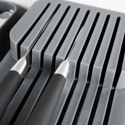 See praktiline noahoidik vastupidavast plastist hoiab sinu köögitarbed korras ja turvalised. Läbimõeldud ehitusel paigutatakse noad kahele tasandile, mis säästab ruumi ja jätab nad samas hõlpsasti kättesaadavaks. Hall värv ja selge, puhas disain sobivad igasse moodsasse kööki.