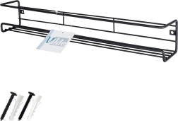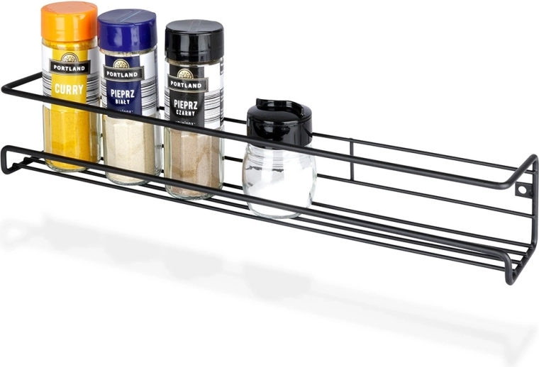 Praktiline seinapealne metallist maitseaineriiul elegantses mustas toonis säästab tööpinnaruumi ja hoiab sinu maitseained ning pisiesemed ühes kohas korrapäraselt. Tänu kompaktsetele mõõtudele 40 × 6,5 × 6,5 cm sobib igasse kööki, vannituppa või esikusse. Vastupidav metallkonstruktsioon, lihtne paigaldus ja universaalne kasutus modernses loft-stiilis.
