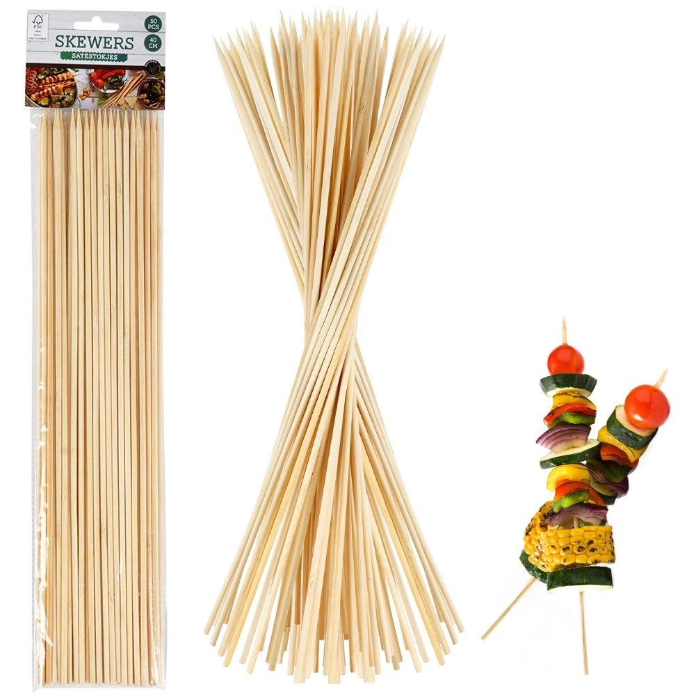 Need pikad bambusvardad sobivad suurepäraselt šašlõki, kebabi ja seguvarraste valmistamiseks grillil või ahjus. Tänu 40 cm pikkusele mahutavad need rohkem ja tagavad ühtlase küpsemise. Looduslik bambus on sile, tugev ja ohutu kokkupuutel toiduga.