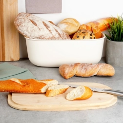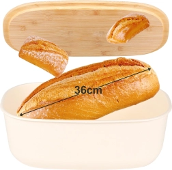 Stiilne kreemikarva leivakarp ühendab modernse disaini ja loodusliku bambuse. Korpus on valmistatud vastupidavast BPA‑vabast plastist, bambuspuidust kaas toimib praktilise lõikelauana. Tänu heldetele mõõtudele 39 × 23,5 × 15,5 cm mahutate mugavalt leiva, baguette’id ja kuklid.