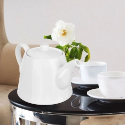 Populaarne ja praktiline valgest portselanist kann täiendab suurepäraselt teie lauanõusid ning võimaldab valmistada suurema koguse lemmikjooki perele ja külalistele. Tugeva sanga ja ergonoomilise tilaga on kallamine sujuv ja ilma tilkumiseta, samas kui hästi istuv kaas aitab hoida joogi kauem soojana.
