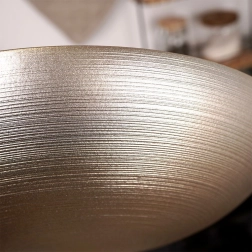 Elegantne kuldse viimistlusega klaaskauss, läbimõõt 30 cm ja maht 2,2 l. Ideaalne salatite, puuviljade ja toitude serveerimiseks. Välispind on matt, peente horisontaalsete triipudega, mis mõjub dekoratiivselt ja lisab lauale stiili. Universaalne kasutus, efektne välimus ja praktiline suurus teevad sellest kausist suurepärase abilise nii igapäevaseks kui ka pidulikuks kasutuseks.