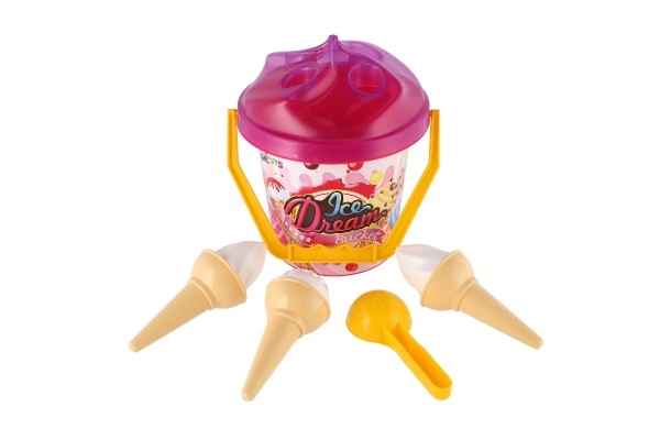 Armas liivakomplekt „Ice Dream Bucket“ muudab iga liivakasti või ranna väikseks jäätisekohvikuks. Lapsed naudivad loomingulist jäätisemängu, kühveldavad liiva jäätisekühvliga ja vormivad palle vahvlitesse. Kerge, värviline ja ohutu mänguasi CE-sertifikaadiga on ideaalne alates 1. eluaastast.