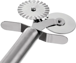 Universaalne roostevabast terasest topeltlõikur kahe lõikekettaga muudab koduste pastade, raviolide, küpsiste ja soolaste kreekerite valmistamise lihtsamaks. Sile ratas lõikab täpselt sirgelt, samas kui dekoratiivne laineline ratas loob efektsed sakilised servad ja aitab ühtlasi sulgeda servad pirukatel või raviolidel.
