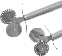 Üks sile ratas puhasteks sirglõigeteks ja teine laineline kaunite sakiliste servade ning taina sulgemise jaoks – ideaalne raviolide, küpsiste ja tartlettide jaoks.
