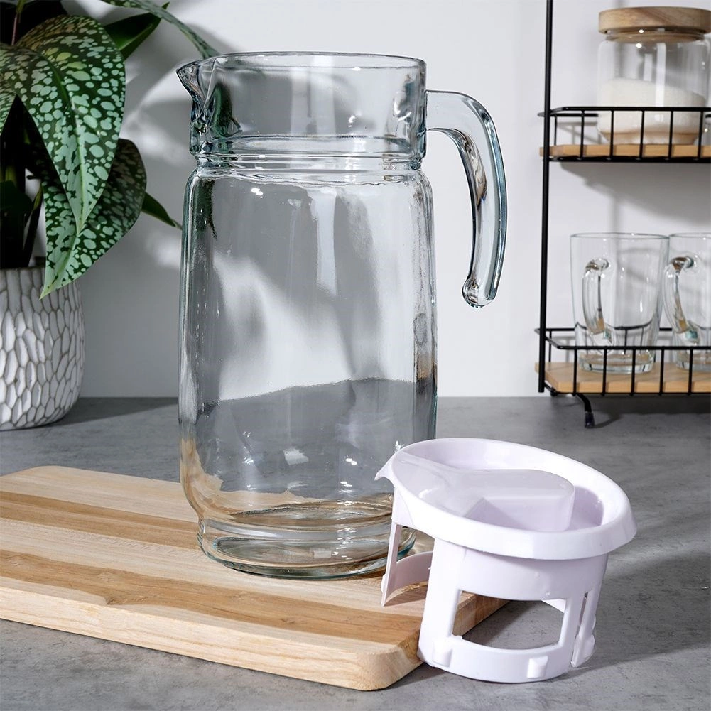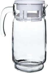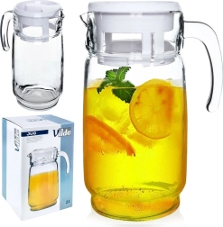 Elegantne klaaskann valge kaanega mahutavusega kuni 2 liitrit on ideaalne vee, mahlade, limonaadi ja jäätee jaoks. Tänu tugevale sangale ja vormitud tilale on jooke mugav valada ilma tilkumata. Praktiline kaan kaitseb sisu mustuse ja putukate eest, samal ajal kui läbipaistev klaas lisab teie lauale dekoratiivse ilme.