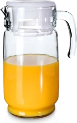 See kvaliteetne kann on valmistatud läbipaistvast, vastupidavast klaasist ning sobib igapäevaseks jookide serveerimiseks nii kodus kui ka aias. Maksimaalne maht ilma kaaneta on 2 l (töömaht kaanega umbes 1,9 l), mis teeb sellest suurepärase valiku perelõunaks, piknikuks ja sõpradega koosviibimiseks. Tänu ergonoomilisele sangale ja laiale suuavale on täitmine, segamine ja puhastamine lihtne.