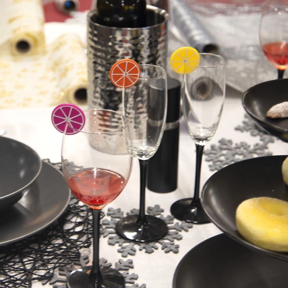 Märgi klaasid ja pokaalid kiiresti ja stiilselt. Silikoonist tsitruserõngad kinnituvad lihtsalt pokaali jalale või klaasi ülaservale. Need on värvikoodiga, nii et igaüks jätab oma värvi kergesti meelde ja jooke ei aeta segi.