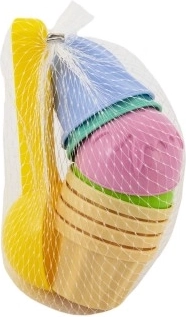 See loominguline komplekt võimaldab lastel “müüa” jäätist ning harjutada motoorikat, kujutlusvõimet ja sotsiaalseid oskusi. Vastupidavad plastkoonused ja -pallid meeldivates roosa, sinise, rohelise, beeži ja valge toonides on kerged, lihtsasti pestavad ning valmis lõputuks mänguks.