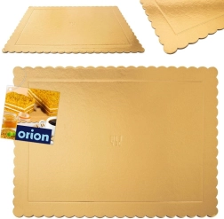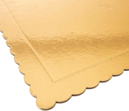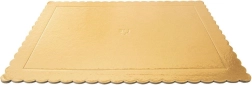 Elegantne ja praktiline valik nii koduseks kui ka professionaalseks küpsetamiseks. Ristkülikukujuline alus kuldse viimistluse ja dekoratiivse krobelise servaga toob esile iga tordi või koogi välimuse. Valmistatud paksust, väga tugevast kartongist, mis ei deformeeru ja kannab kindlalt ka suuremaid ning mitmekihilisi magustoite.