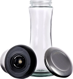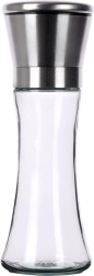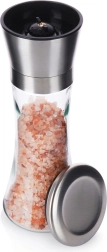 Elegantne käsiveski soola, pipra ja muu maitseaine jaoks, kõrgus 19 cm, ühendab läbipaistva klaasi ja roostevaba terase. Keraamiline jahvatusmehhanism purustab usaldusväärselt ka kõvemad terad ning astmevaba jahvatusjämeduse reguleerimine võimaldab seadistada täpselt vajaliku tekstuuri. Praktiline kaitsekork hoiab jäägid kinni ja aitab köögi puhtana hoida.