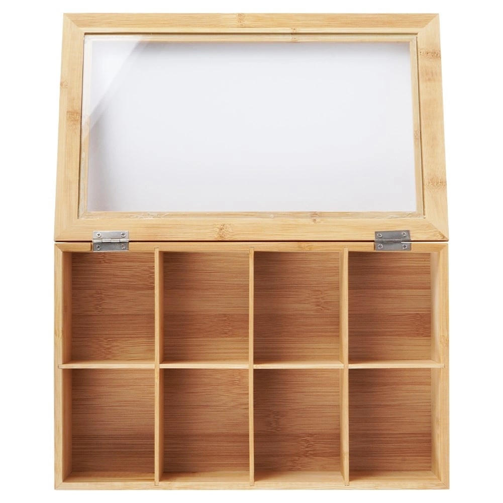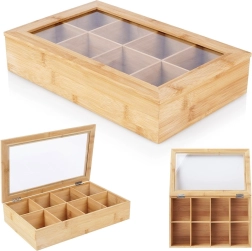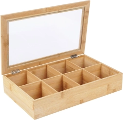 See stiilne bambusest teekarp pakub nutikat ja esteetilist lahendust teekottide hoiustamiseks. Tänu kaheksale eraldatud sahtlile saad hõlpsalt sorteerida erinevad teeliigid ja maitsed. Läbipaistev kaas annab kiire ülevaate sisust ilma karpi avamata.