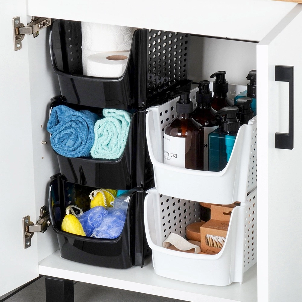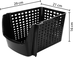 Neutraalse musta värvi tõttu sobitub see hõlpsasti koduse sisustusega. Suurepärane mitte ainult toiduainetele, vaid ka puhastusvahenditele, väiksematele majapidamistarvetele või kontoritarvetele. Mitme korvi puhul saate neid virnastada ja nii väärtuslikku ruumi säästa.